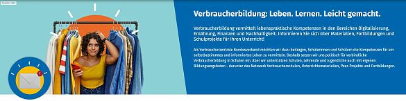 Der Verbraucherzentrale Bundesverband (vzbv) unterstützt bundesweit Schulen und außerschulische Lernorte darin, mit Verbraucherbildung junge Menschen fit fürs Leben zu machen. Verbraucherbildung dient der Vermittlung von lebenspraktischen Kompetenzen in den miteinander verzahnten Handlungsfeldern Digitalisierung, Ernährung, Finanzen und nachhaltiger Konsum. Auf folgende Angebote möchten wir Sie gerne hinweisen: